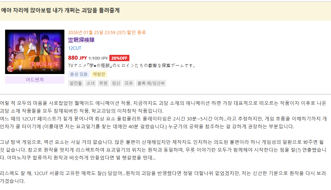 1. 리뷰글 링크 추가 및 DLsite 상점페이지 리뷰 게재 불가에 따른 (분노에 가득 찬) 넋두리 추가
