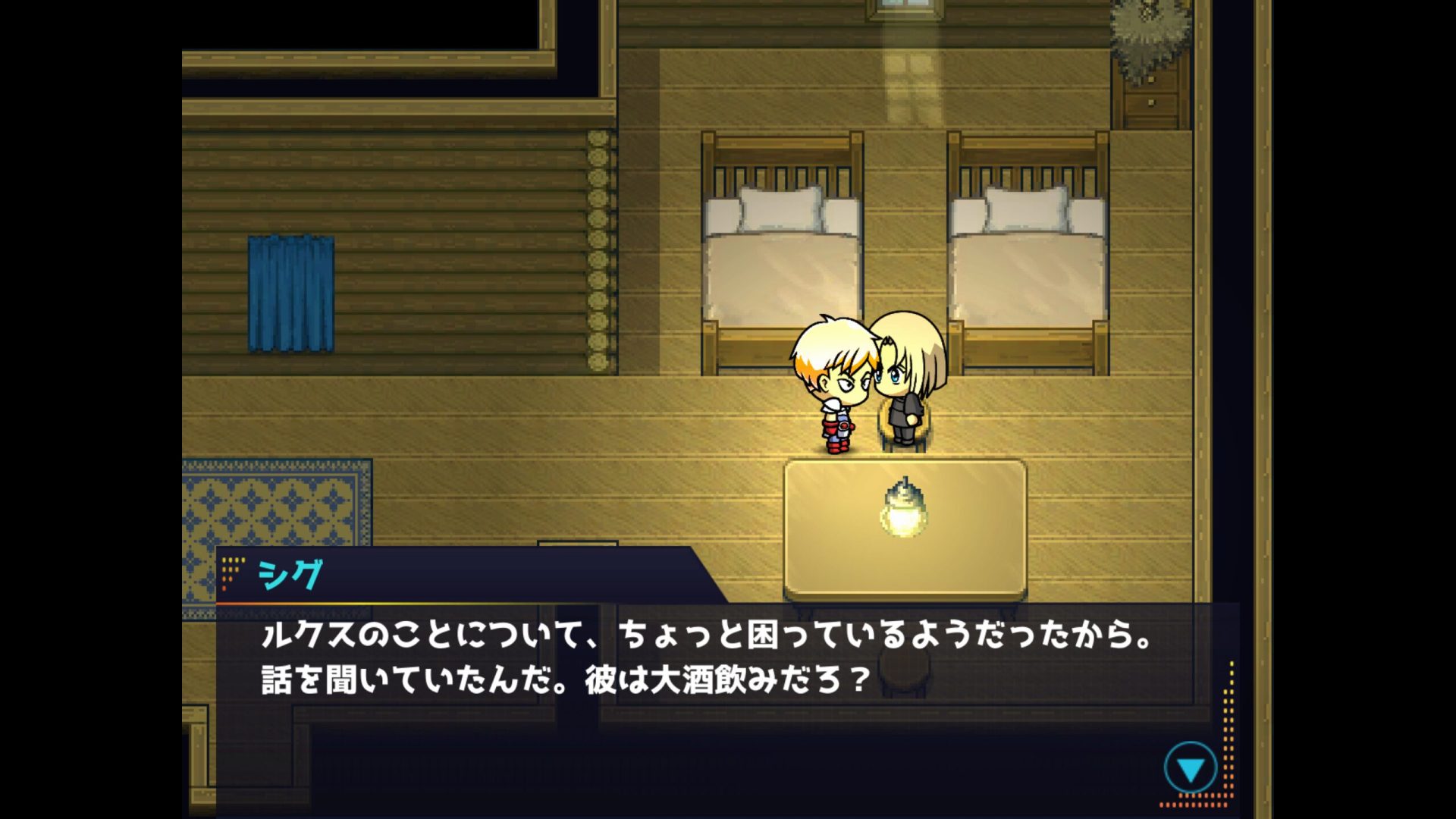 밖으로 나가보니 술에 취해 몸을 가누지 못하는 룩스와 그로 인해 고생하는 룬의 모습이 보입니다.