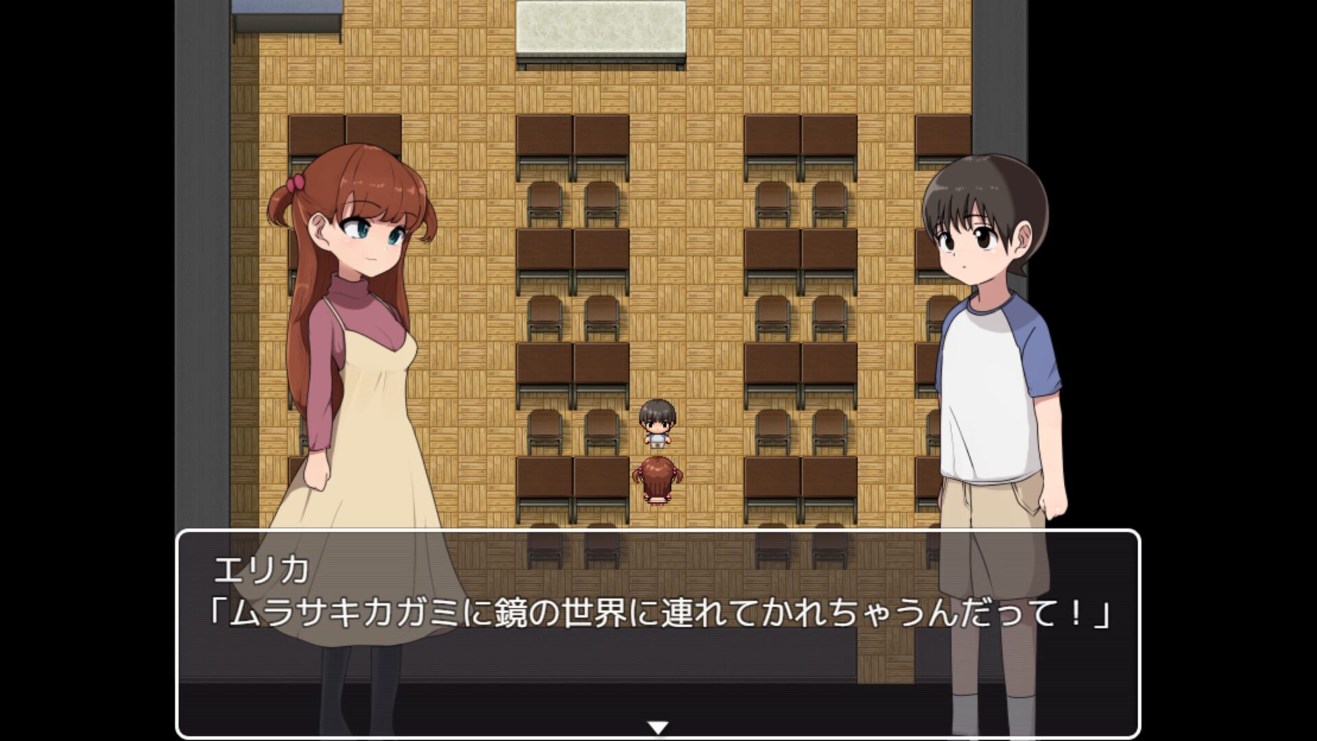 자색 거울, 무라사키카가미를 등지고 서있는 에리카.