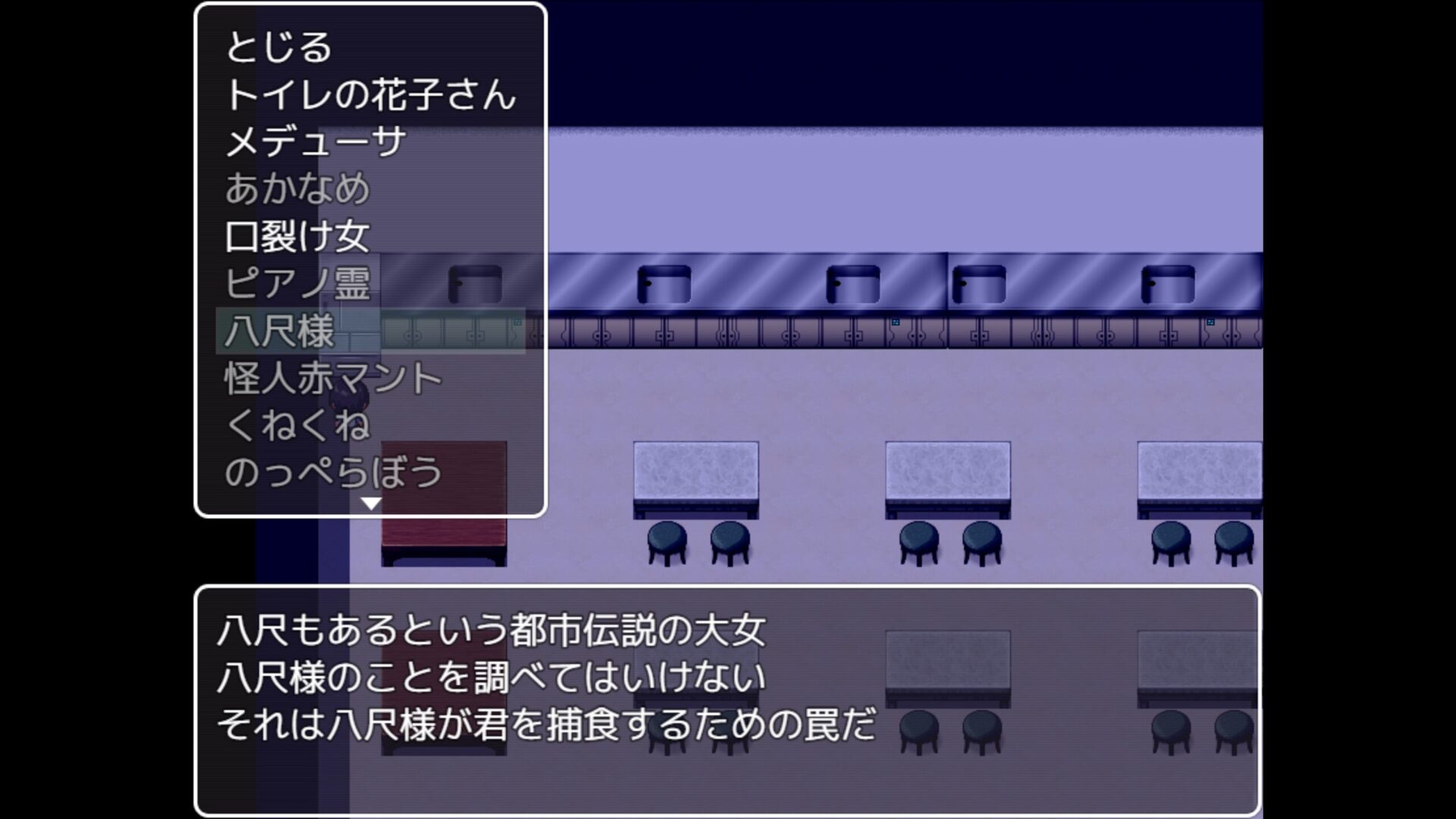 그리고 그곳에 있는 자색의 거울을 쳐다보고 있으면 거울 속 세계에 이끌려가버리고 만다는 무시무시한 괴담이었죠.