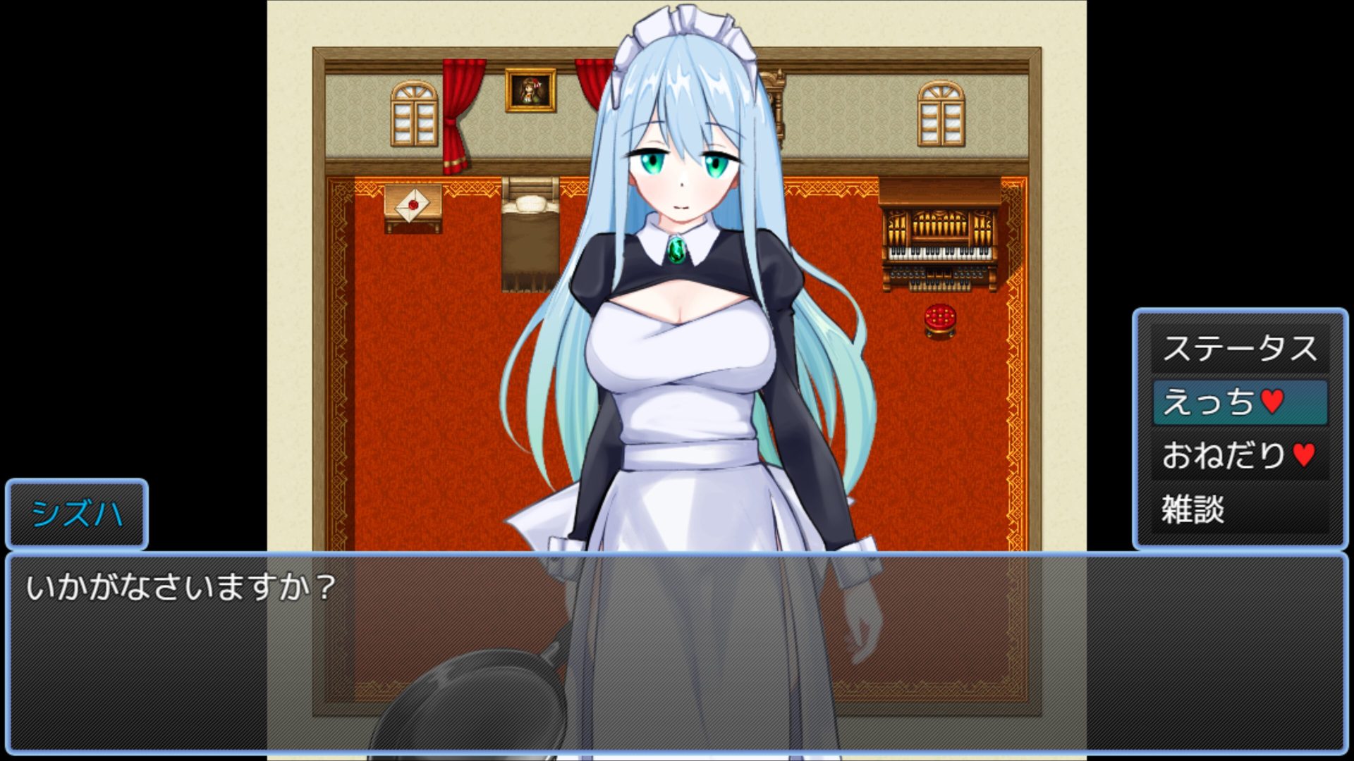 에로 스테이터스(ステータス) 확인의 경우 메뉴창과 시즈하와의 대화 양측 모두에서 가능하긴 하지만,