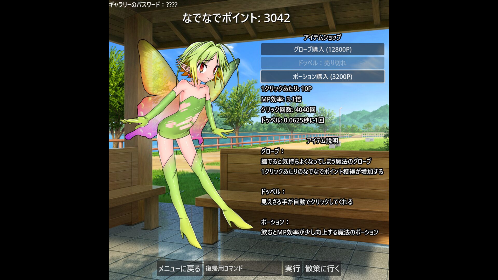 클릭 횟수가 2000의 배수일 때마다 요정의 옷이 찢겨나가며, 8000회 클릭으로 전라로 만들어버릴 수 있습니다.