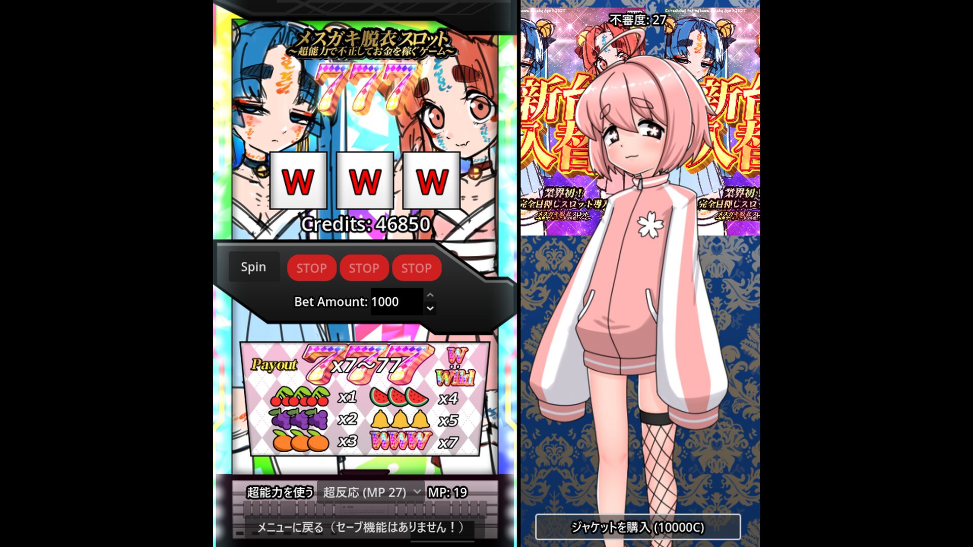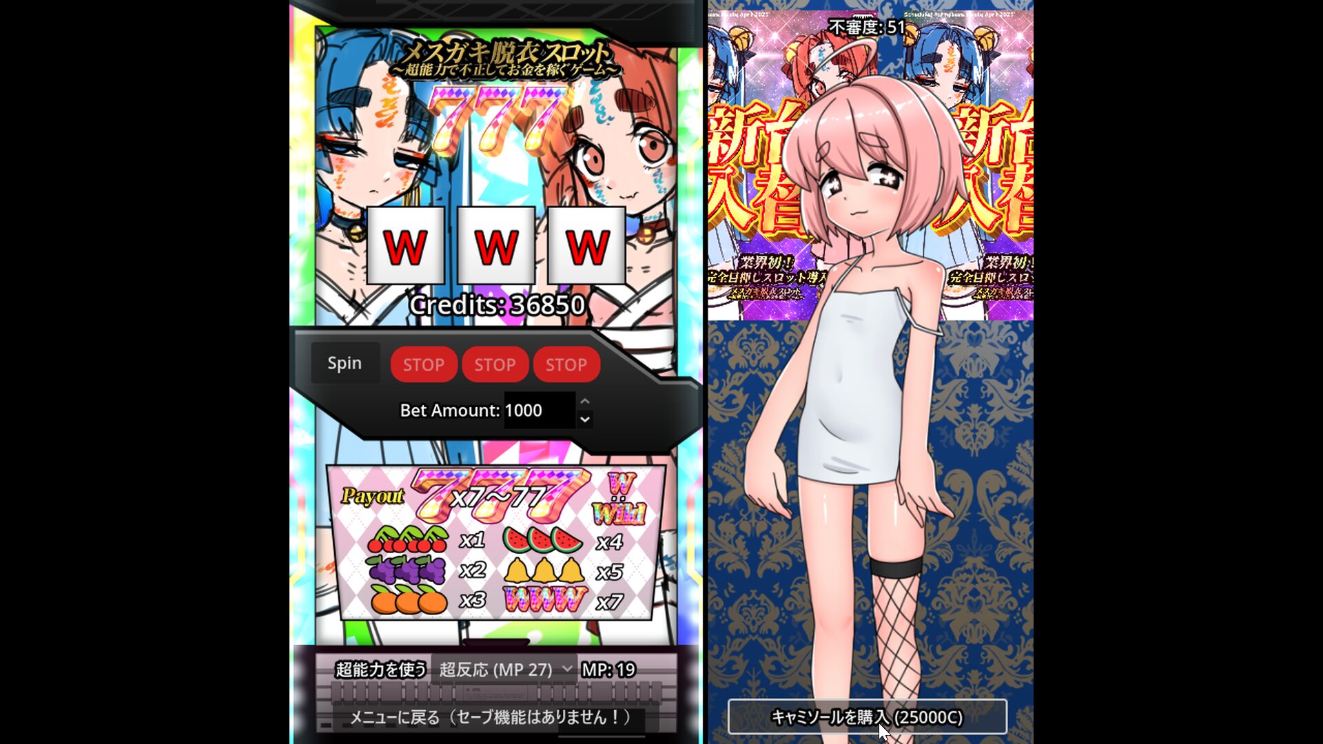 게임명(원어) : メスガキ脱衣スロット~超能力で不正してお金を稼ぐゲーム~
