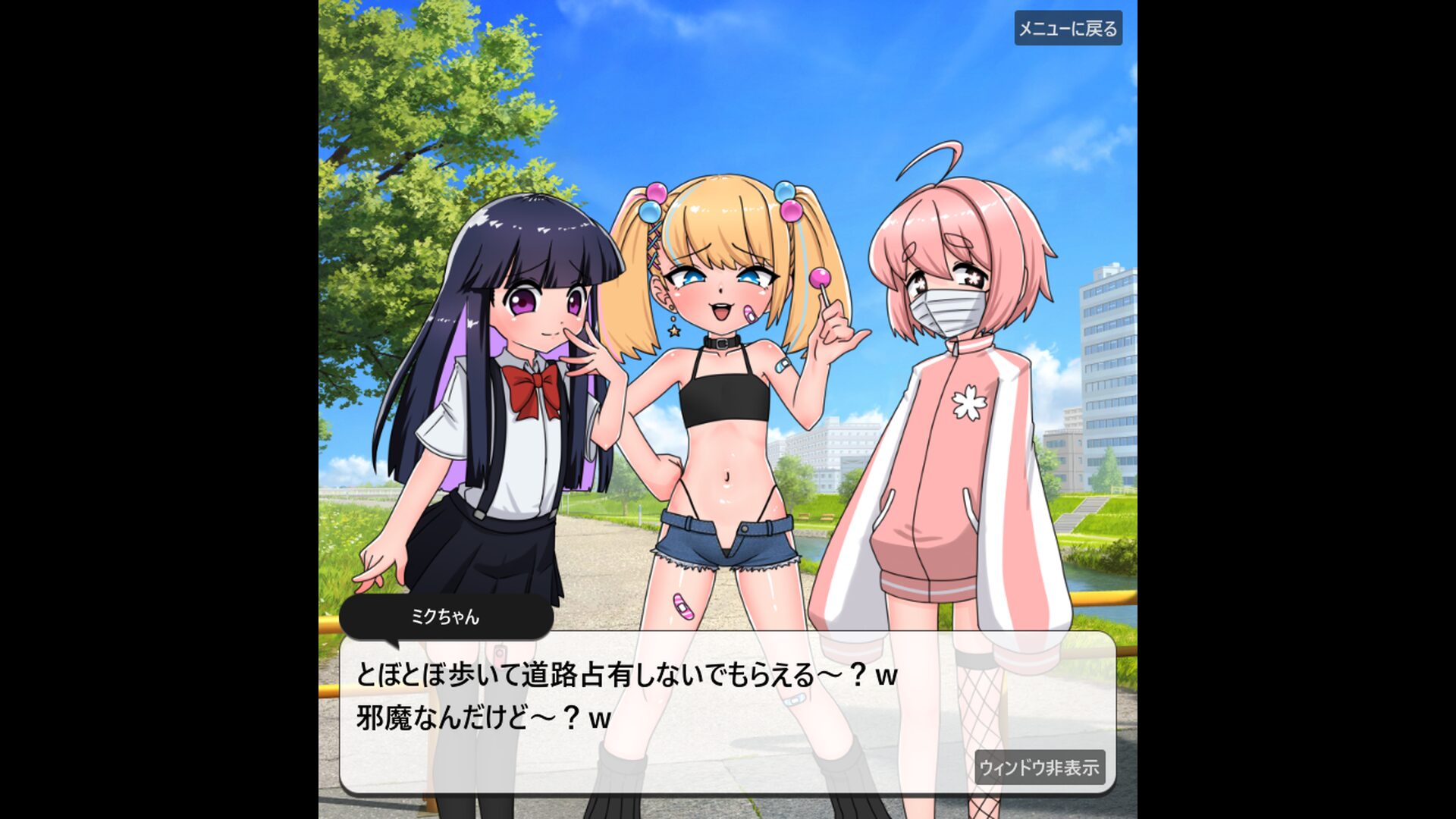 터덜터덜 집으로 돌아가던 길에 마주하게 된 메스가키 삼인방은 오늘도 그를 수상한 사람 취급하며 놀려댔습니다.