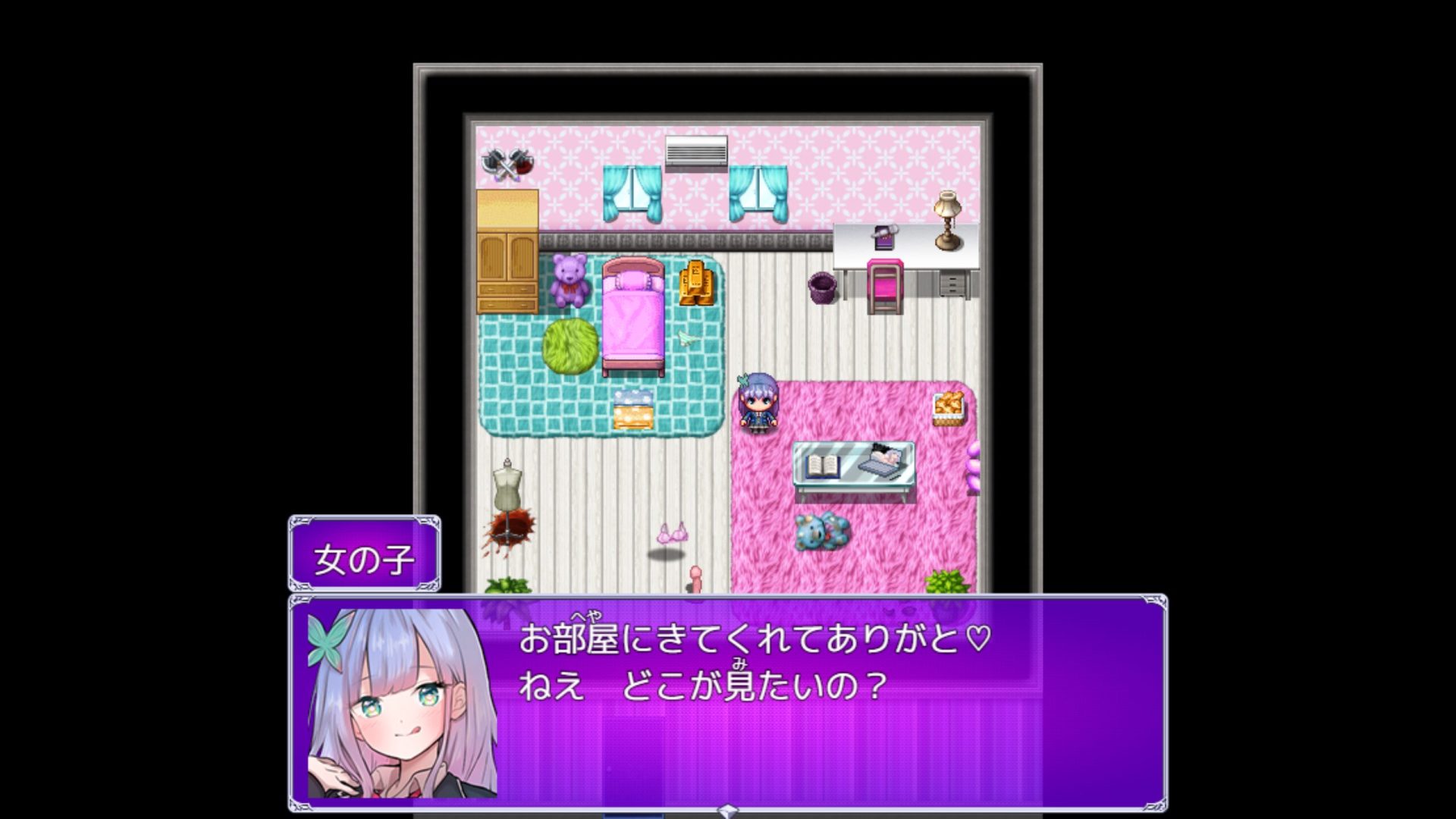 여자아이(女の子)의 방에 초대를 받은 당신(あなた)이 방 이곳저곳을 조사할 뿐인 작품입니다.