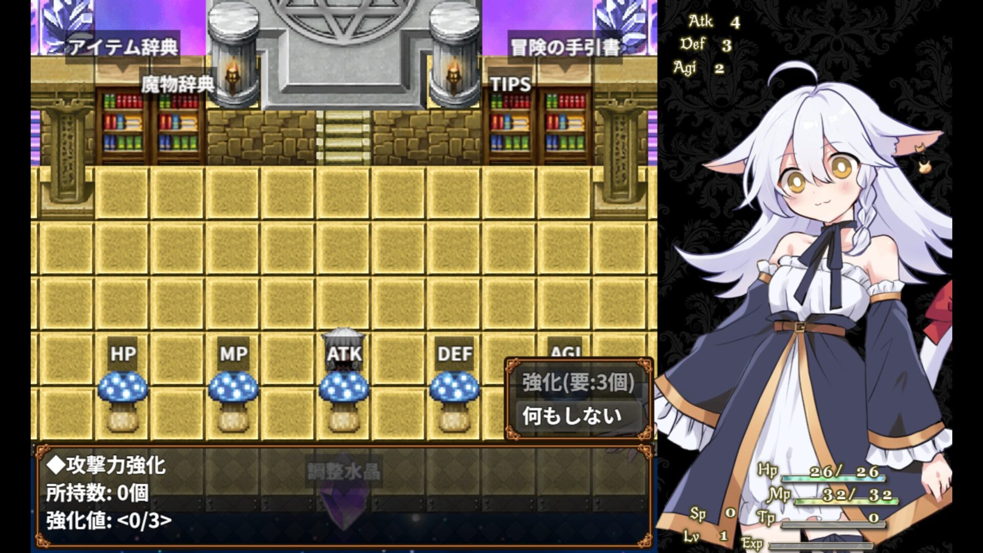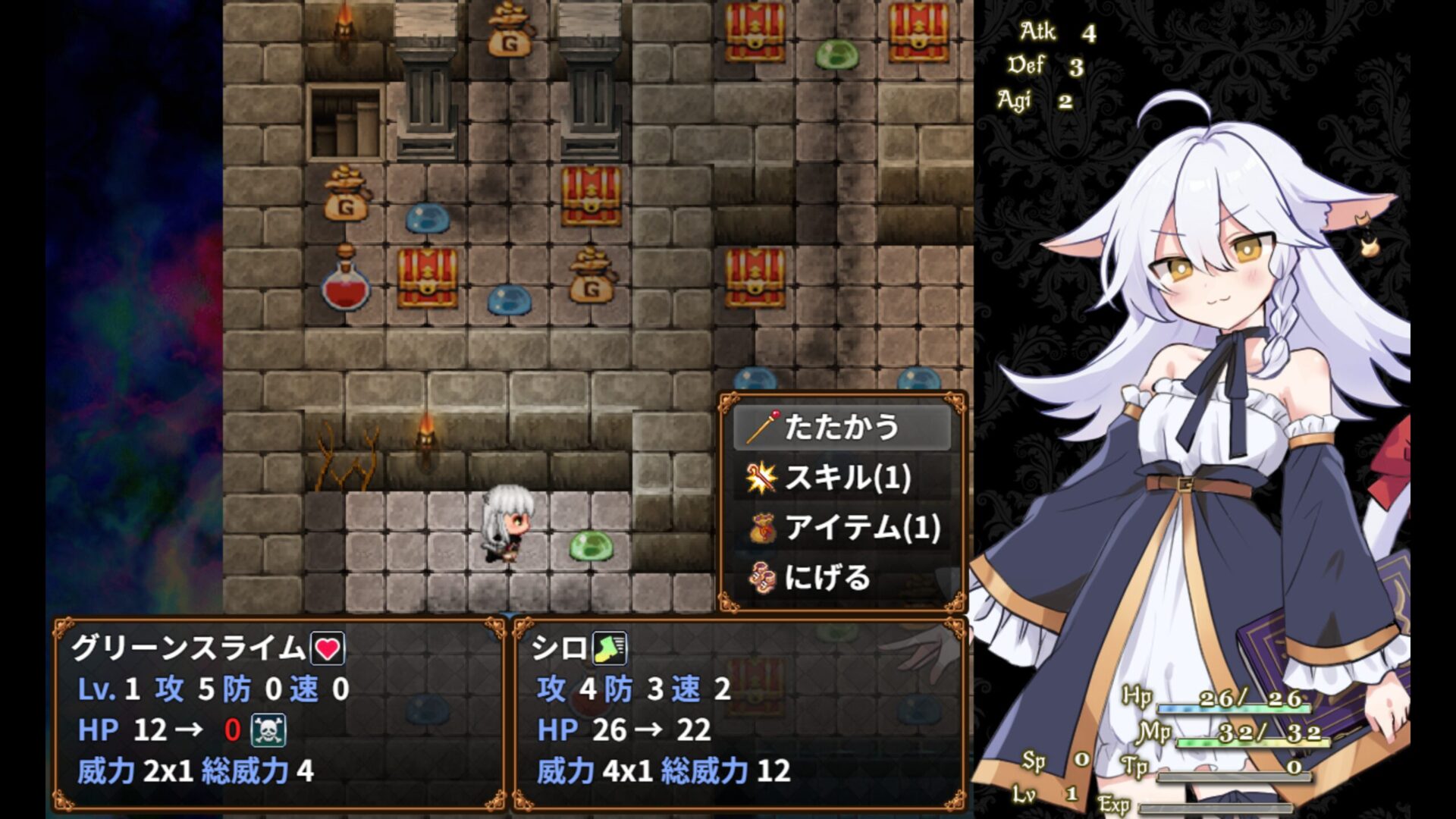 귀여운 고양이귀 소녀 시로가 책 속 던전을 탈출하려 한다는 로그라이트+WWA 융합형 장르 작품입니다.