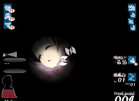 현재 시오리의 수면 깊이는 Z 표시 개수로 알아볼 수 있으며 가장 깊은 수면 상태에서는 Z가 4개입니다.